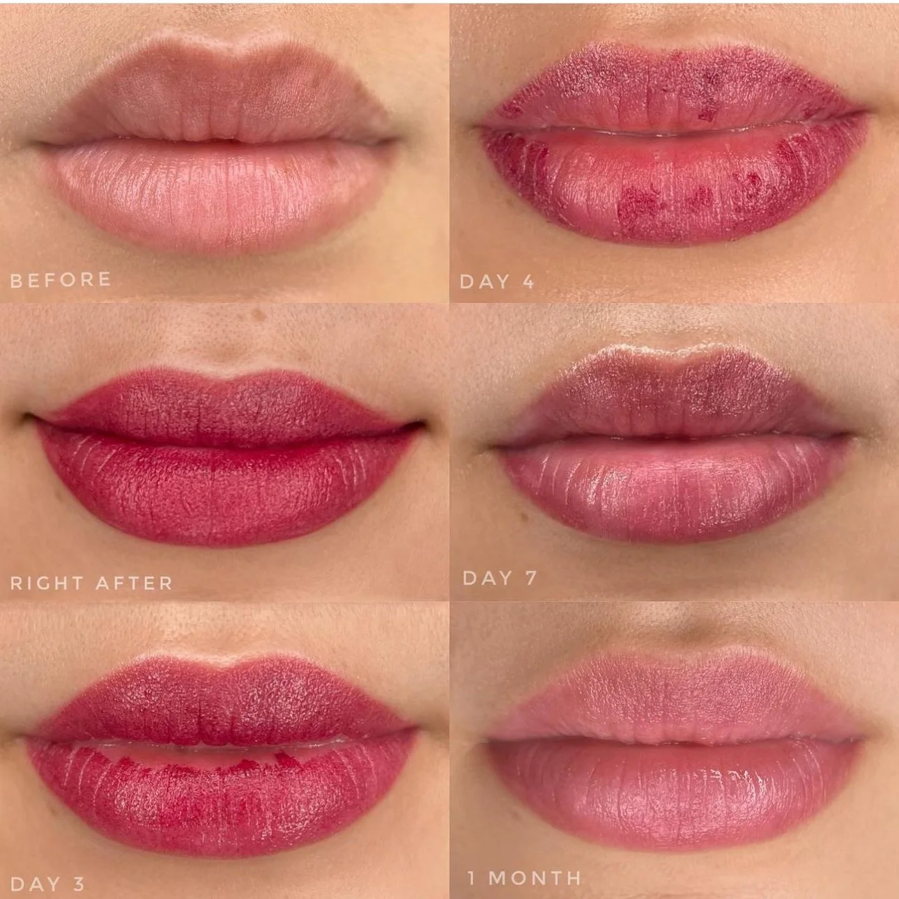 Day 8-10: lips should fully heal for most people during this time. No more flaking of old skin. Client can now apply lipstick or other lip balms besides the recommended aftercare ointments